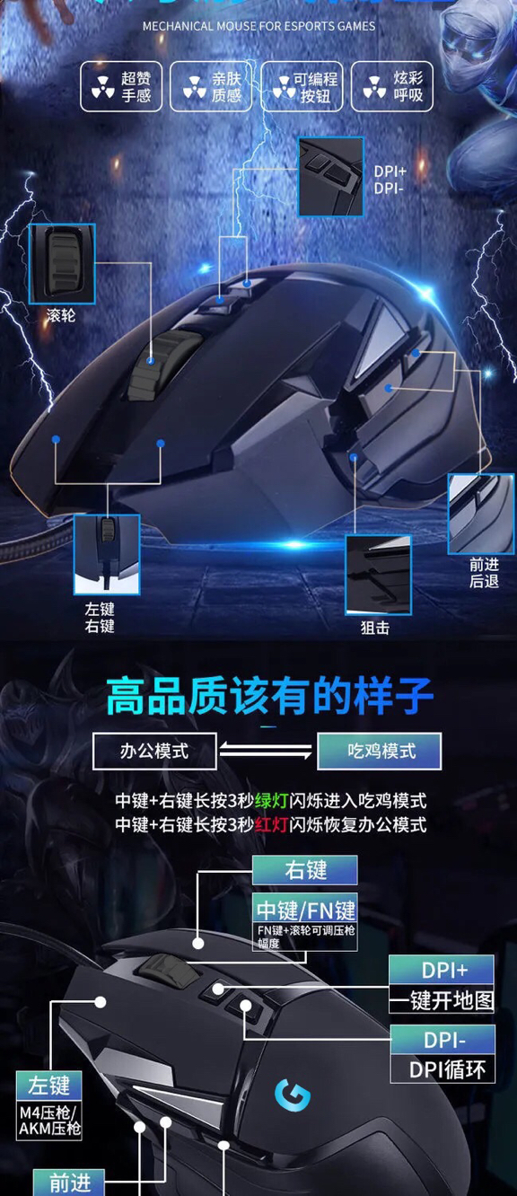 泉罗技术G502有线游戏鼠标lol网吧英雄联盟RGB电竞压枪宏编程吃鸡