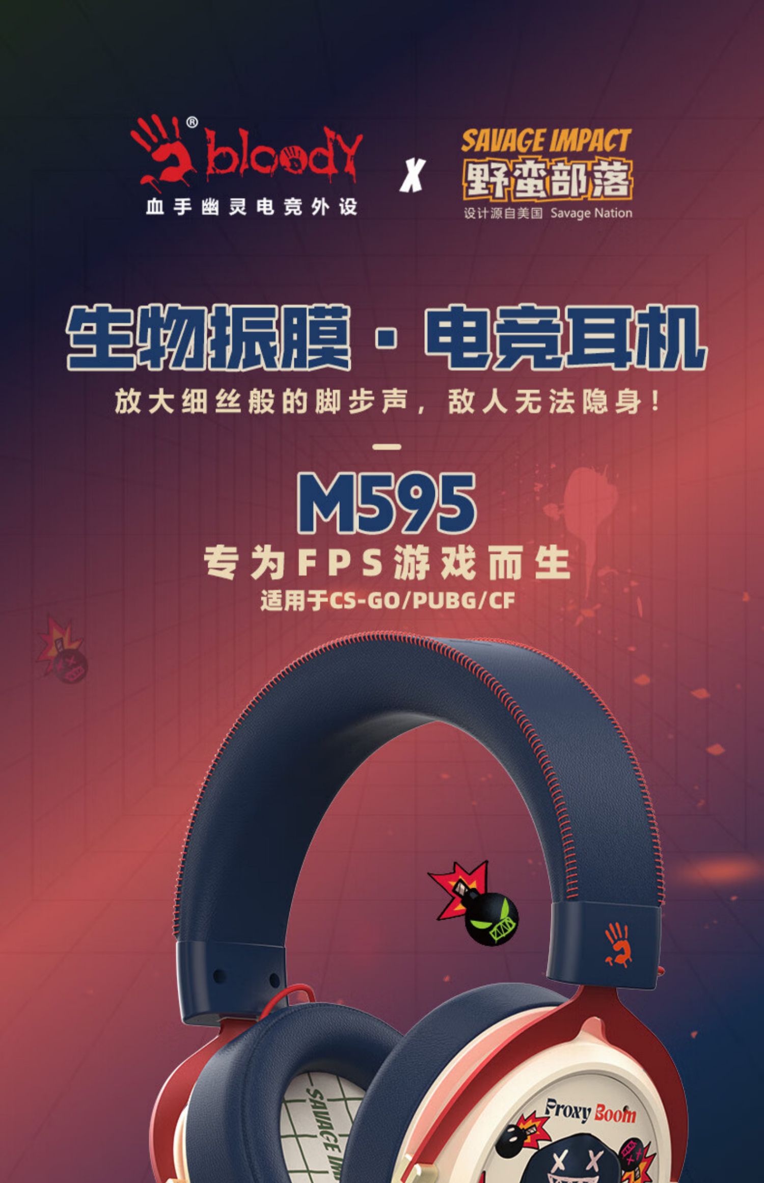 双飞燕野蛮部落M595电竞游戏耳机头戴式有线无线台式电脑带麦克风