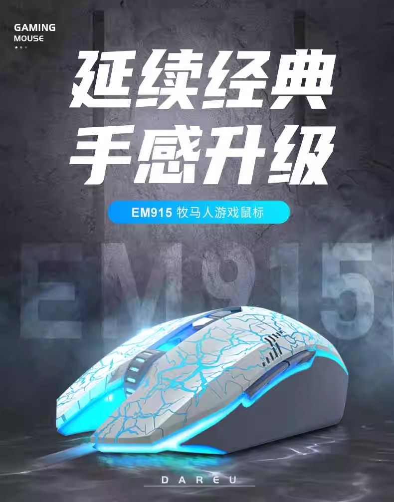 达尔优牧马人鼠标游戏天空之境EM910pro有线电竞电脑轻量化鼠标